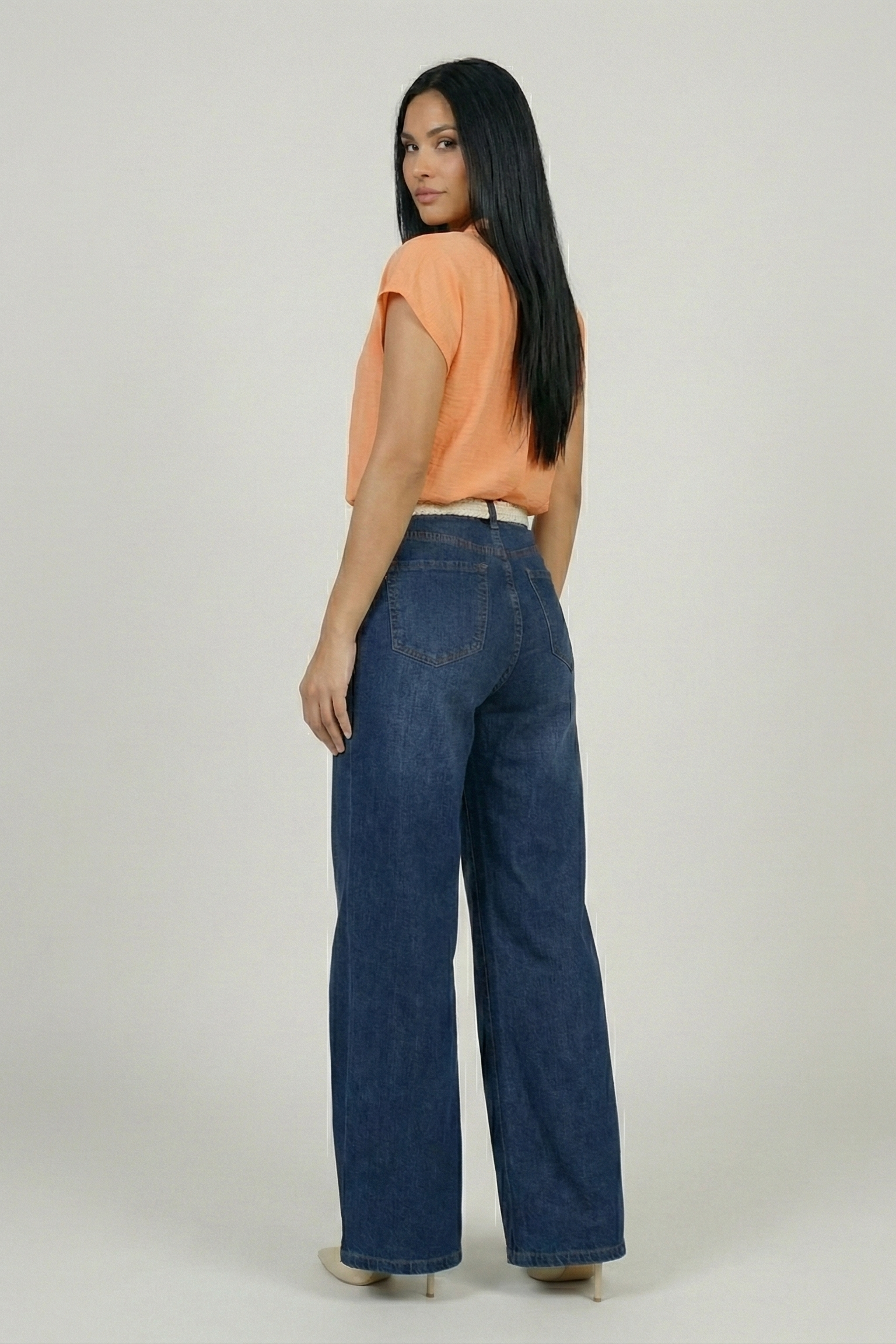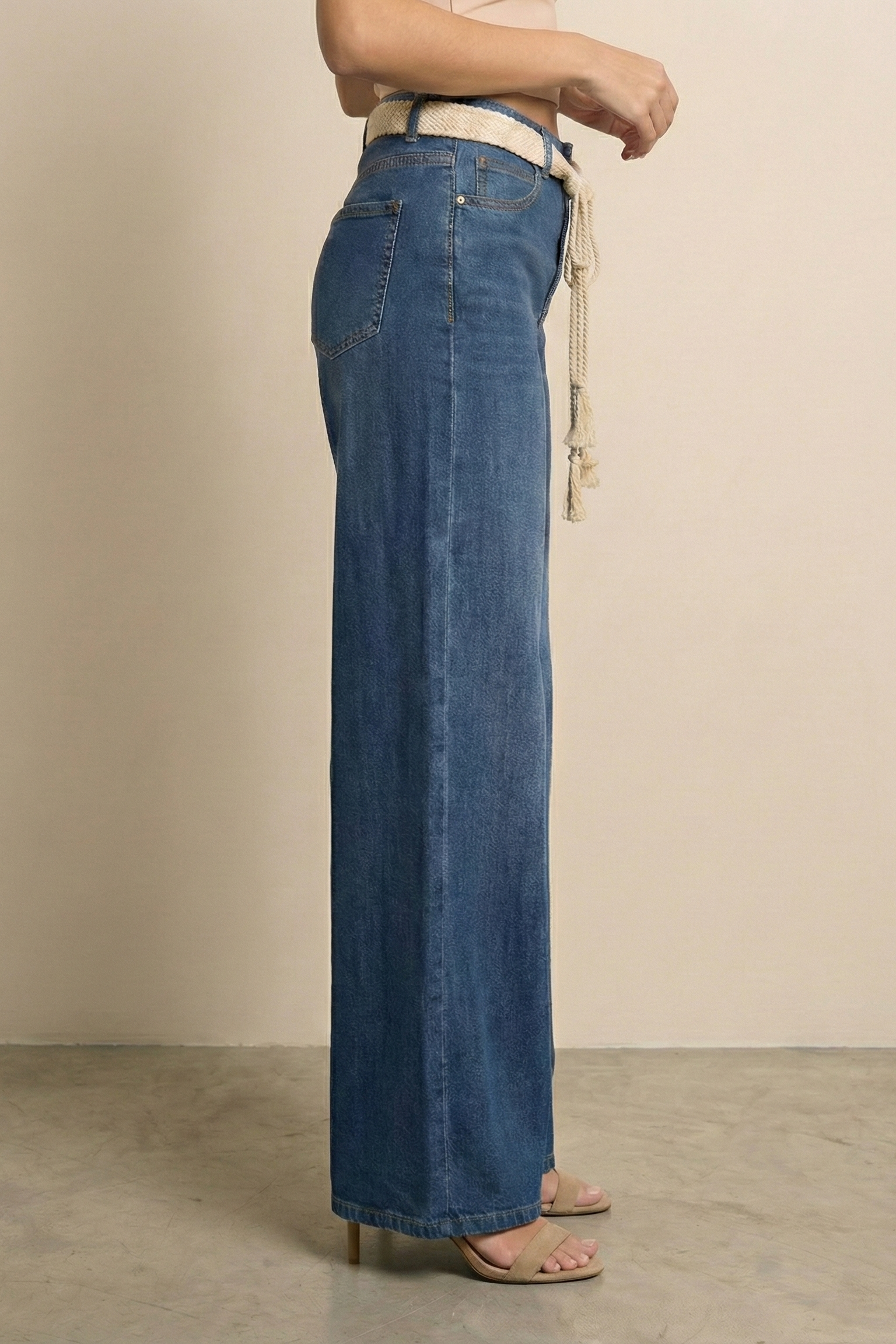 The ultimate lounge-around jeans, featuring a belt, mid-rise waist and wide relaxed legs for effortless style and maximum comfort.