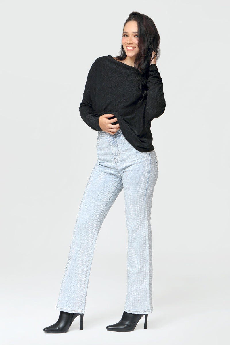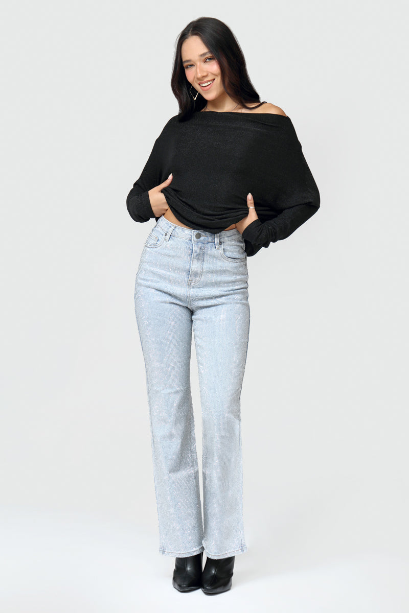 An iconic fit with vintage inspired straight legs that will have you straight up obsessed. Features allover facetted studs that offer next - level shine. A must-have for those who like to stand out with style.